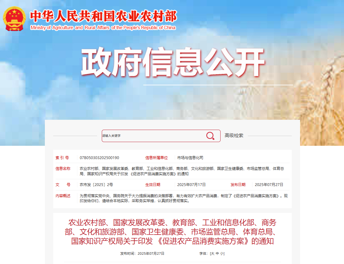 ——促进农产品消费实施方案