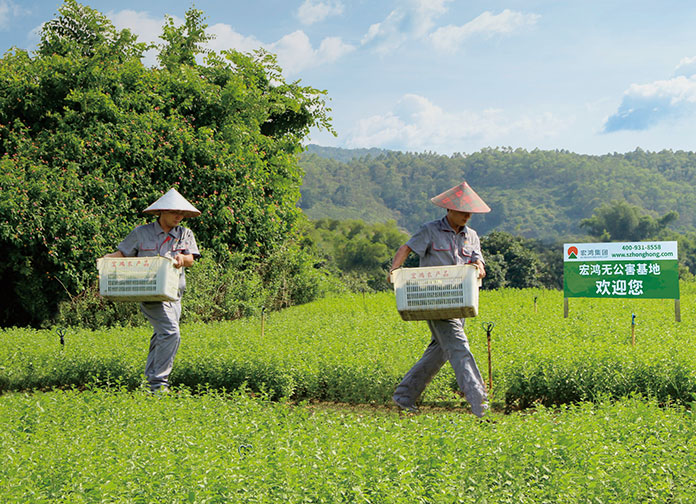 宏鸿在全国范围内建设了近百个自有蔬菜基地,总面积达15000亩,其中惠东县白花镇基地获得广东省农业厅颁发的“无公害农产品产地认定”证书。